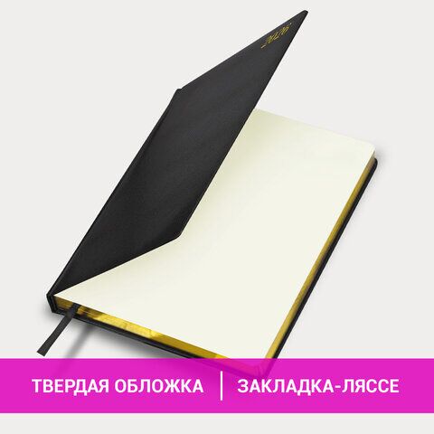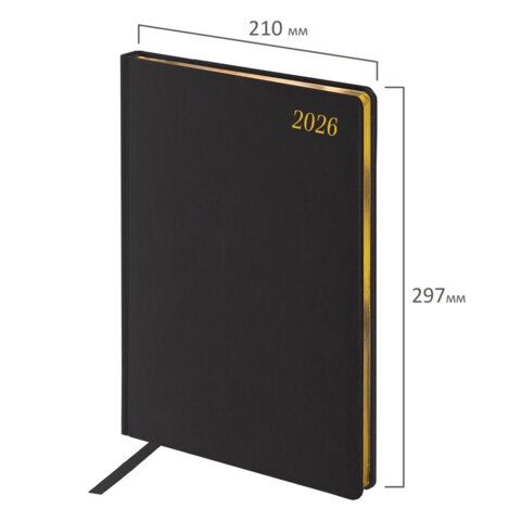 Еженедельник датированный 2026, БОЛЬШОЙ ФОРМАТ 210х297 мм, А4, BRAUBERG "Iguana", под кожу, черный, 169985