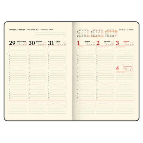Еженедельник датированный 2026, БОЛЬШОЙ ФОРМАТ 210х297 мм, А4, BRAUBERG "Iguana", под кожу, черный, 169985, купить в Грант СПБ