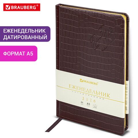 Датированный еженедельник BRAUBERG "Comodo" – великолепная возможность прикоснуться к легендарной рептилии. Обложка, стилизованная под кожу крокодила, и насыщенный цвет делают этот деловой аксессуар изысканным. Внутренний блок включает 64 листа тонированн