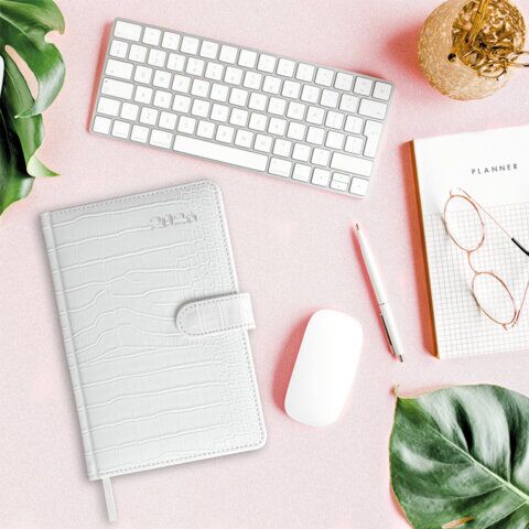 Еженедельник датированный 2026 А5 145х215 мм, BRAUBERG "Party", под кожу, белый, 170009, купить в Грант СПБ
