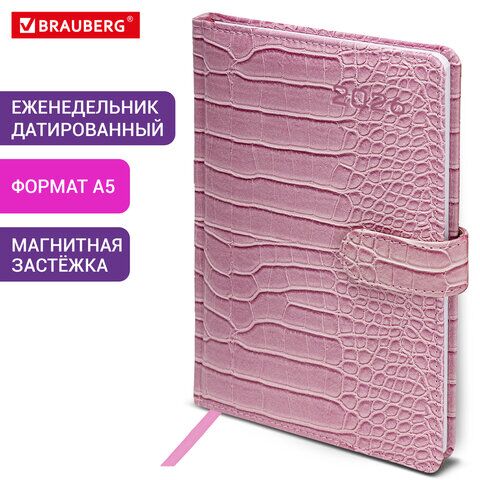 Еженедельник BRAUBERG "Party" – это аксессуар для неординарных людей. Насыщенные цвета и выраженная текстура выгодно дополнены магнитной застежкой. Дизайн, выполненный под крокодиловую кожу, станет эффектным дополнением к офисному образу. Внутренний блок
