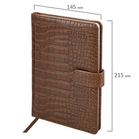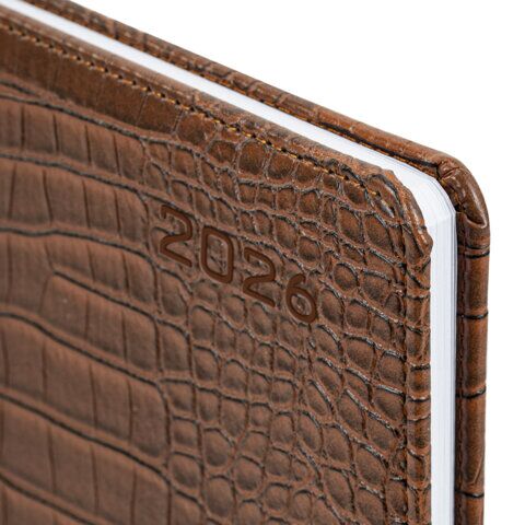 Еженедельник датированный 2026 А5 145х215 мм, BRAUBERG "Party", под кожу, коричневый, 170007