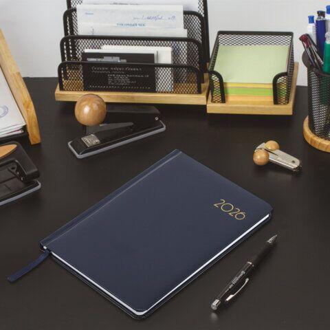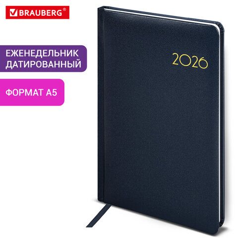 Датированный еженедельник BRAUBERG "Select" удобно использовать как в офисе, так и на выездных деловых встречах. Жесткая книжная обложка с легкой рельефной фактурой напоминает натуральную кожу темно-синего цвета. Материал обложки – балакрон, он подходит д