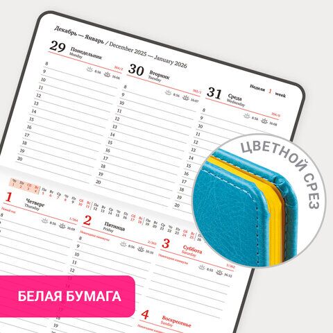 Еженедельник серии "Rainbow" бренда BRAUBERG с яркой бирюзовой обложкой предназначен для энергичных людей, любящих нестандартные подходы к решению поставленных задач. Внутренний блок включает 64 листа белой бумаги плотностью 70 г/м2. Благодаря малому форм
