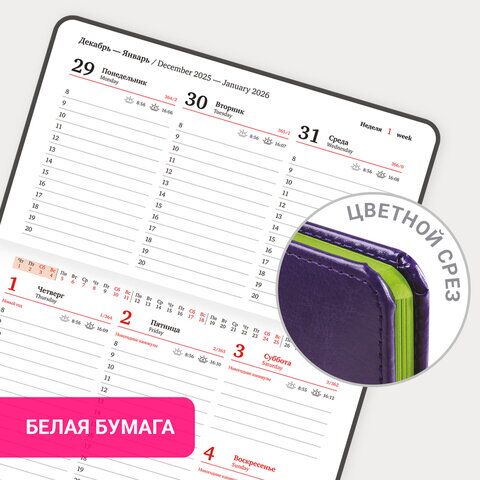 Еженедельник серии "Rainbow" бренда BRAUBERG с яркой сиреневой обложкой предназначен для энергичных людей, любящих нестандартные подходы к решению поставленных задач. Внутренний блок включает 64 листа белой бумаги плотностью 70 г/м2. Благодаря малому форм