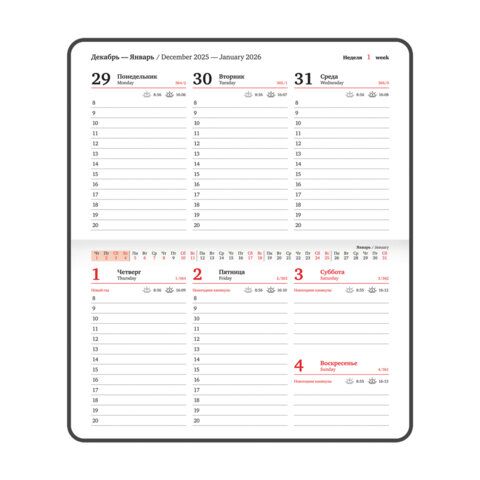 Еженедельник BRAUBERG "Select" выполнен в классическом стиле. Обложка черного цвета имеет гладкую матовую поверхность, приятную на ощупь. Подходит практичным людям, ценящим лаконичность, комфорт и своё время. Внутренний блок включает 64 листа белой бумаги