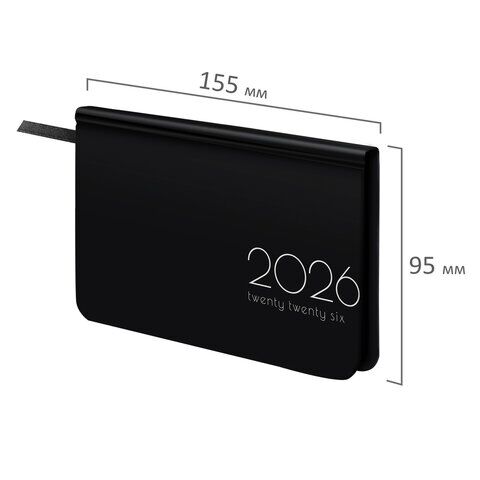 Еженедельник датированный 2026 МАЛЫЙ ФОРМАТ 95х155 мм, А6, BRAUBERG "Vista", под кожу, "Black coal", 170035