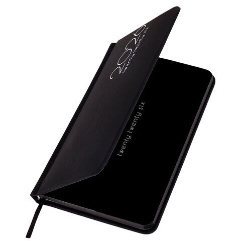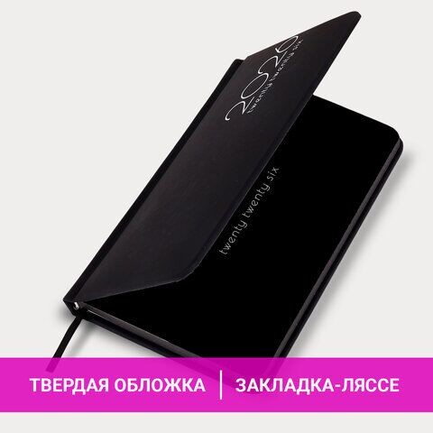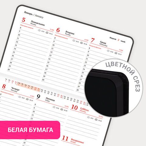 Еженедельник датированный 2026 МАЛЫЙ ФОРМАТ 95х155 мм, А6, BRAUBERG "Vista", под кожу, "Black coal", 170035, купить в Грант СПБ