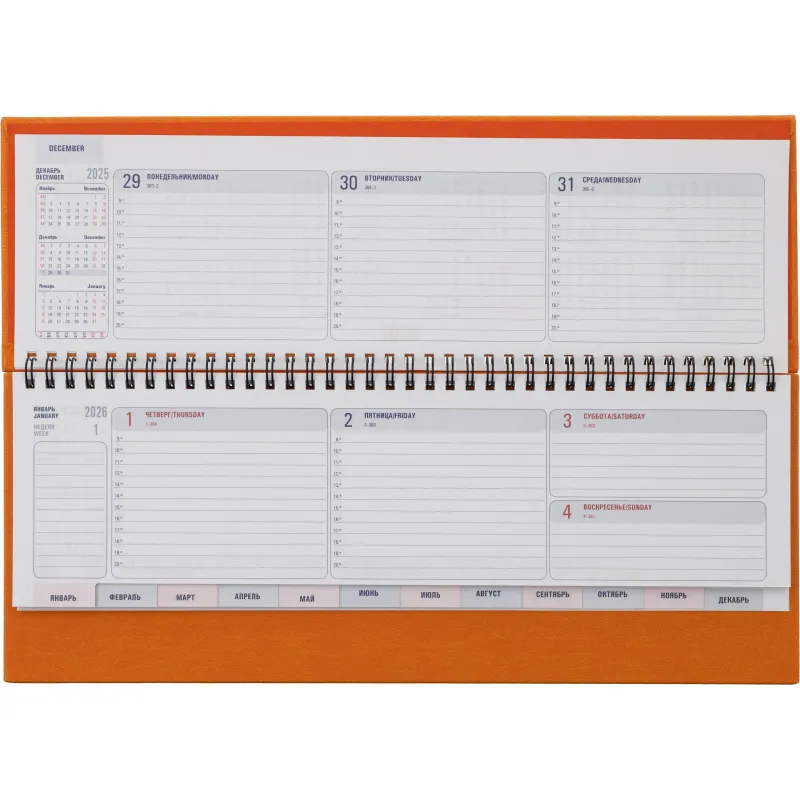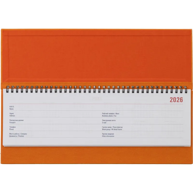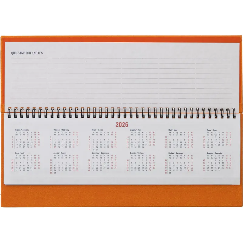 Планинг датированный на ,2026 ,год. Формат: 340×,130 ,мм. Цвет: оранжевый. Блок 110 страниц (55 ,листов) в ,2 ,краски. Бумага офсетная 70 ,г/кв.м. Календарь на ,2025-2026 ,г. Вырубка блока по ,месяцам. Твердая