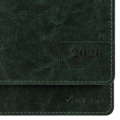 Планинг датированный 2026 305х140 мм BRAUBERG "Imperial", под кожу, зеленый, 170059