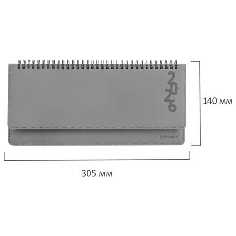 Планинг датированный 2026 305х140 мм BRAUBERG "Up", под кожу, серый, 170065, купить в Грант СПБ