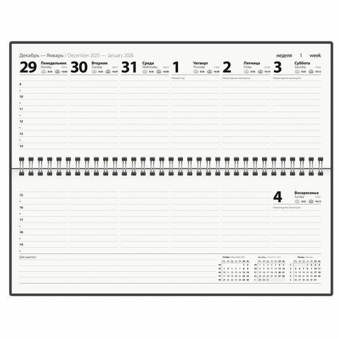 Планинг датированный 2026 285х112 мм, STAFF, гребень, картонная обложка, 64 л., "Россия", 170183, купить в Грант СПБ