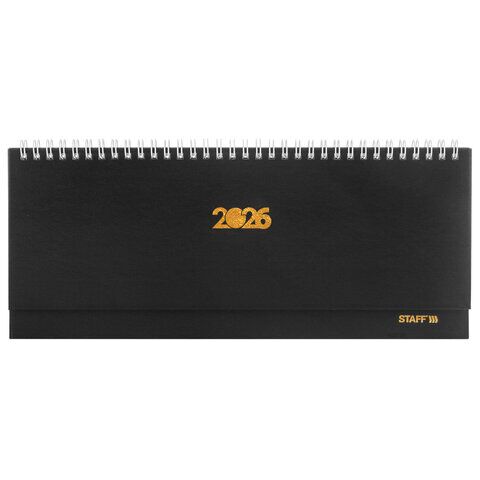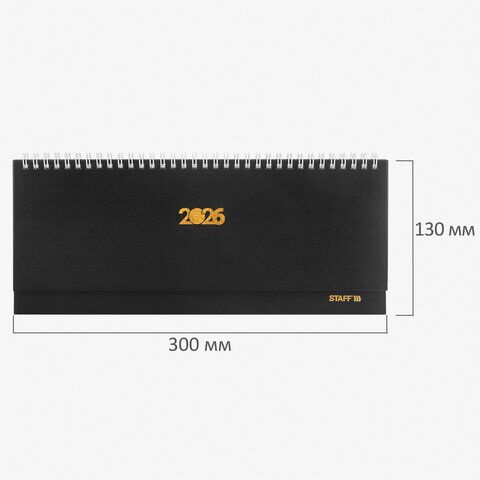 Планинг датированный 2026 300х130 мм, STAFF, гребень, обложка бумвинил, 64 л., черный, 170181
