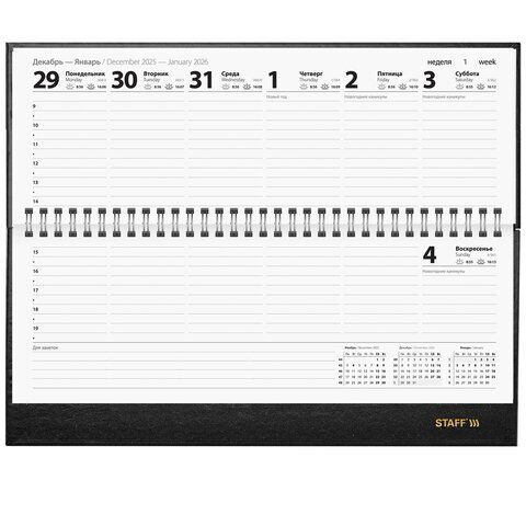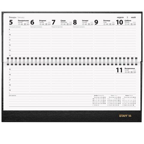 Планинг датированный 2026 300х130 мм, STAFF, гребень, обложка бумвинил, 64 л., черный, 170181, купить в Грант СПБ