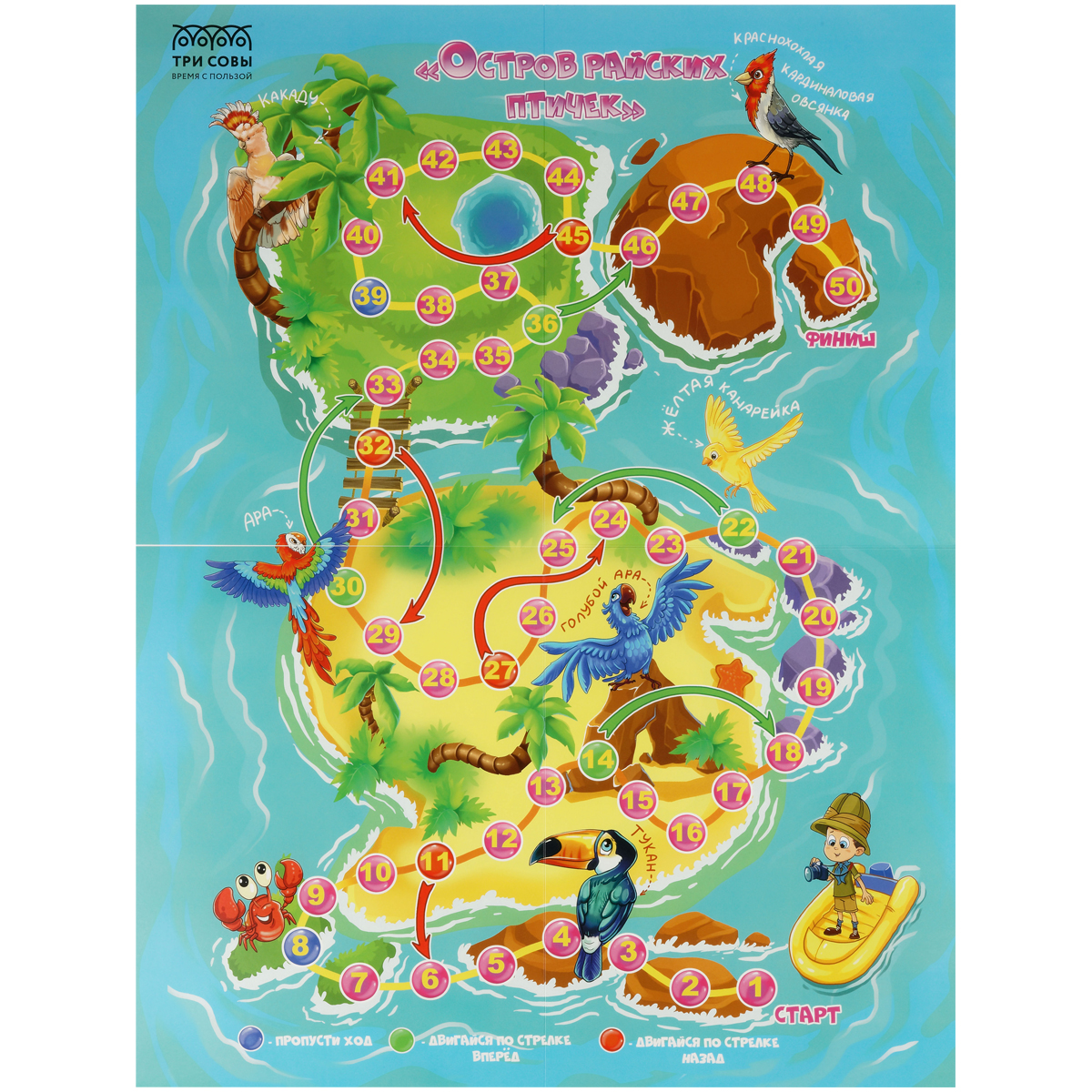 Настольная игра ТРИ СОВЫ "Ходилка-бродилка. Остров райских птичек", пакет с европодвесом, 142482, купить в Грант СПБ