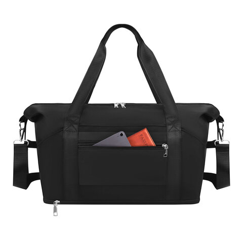 Одно большое отделение сумки позволит вместить как все необходимое в долгой поездке, так и сменную одежду и инвентарь для занятий спортом, банные принадлежности и другие вещи, в зависимости от целей ее использования.