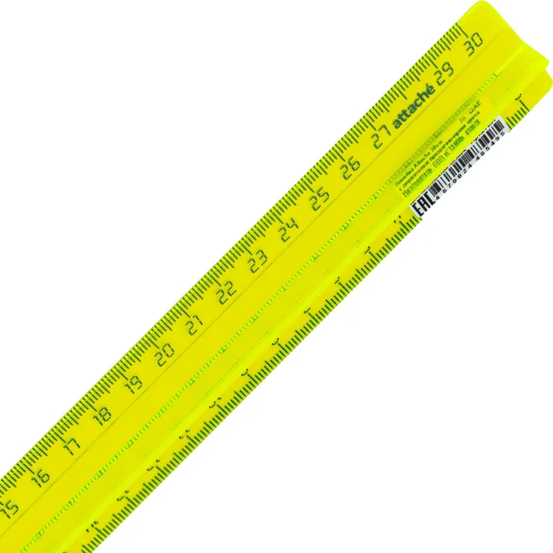 30-сантиметровая линейка с держателем Attache выполнена из полистирола с двойной шкалой, предназначена для чертежных работ. Прозрачные, флуоресцентные цвета: розовый, желтый, зеленый, оранжевый. Товар поставляется в нескольких вариантах цвета/дизайна (без возможности выбора).