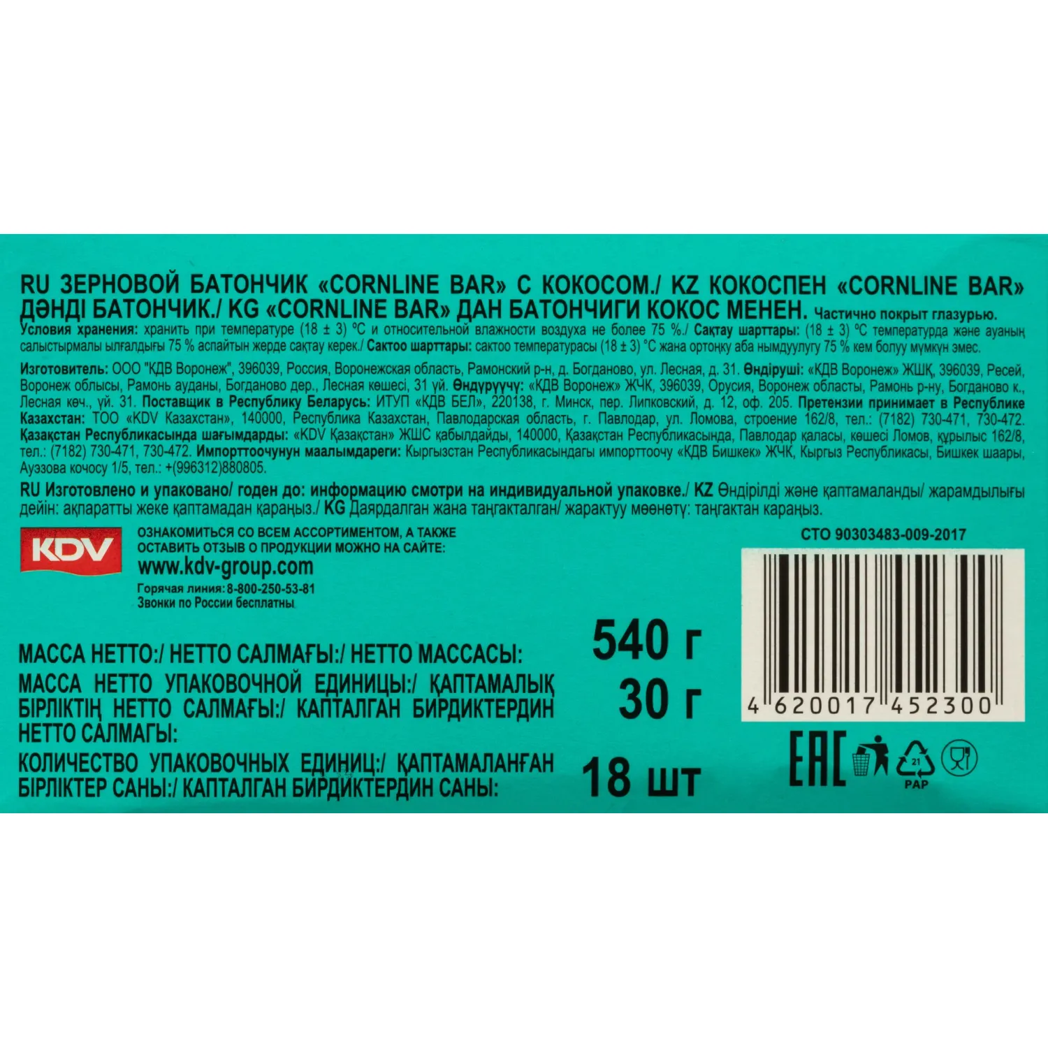 Батончик Cornline из цел злаков с кокосом и возд.рисом, 30гх18шт/уп (ВК247), 106942, купить в Грант СПБ