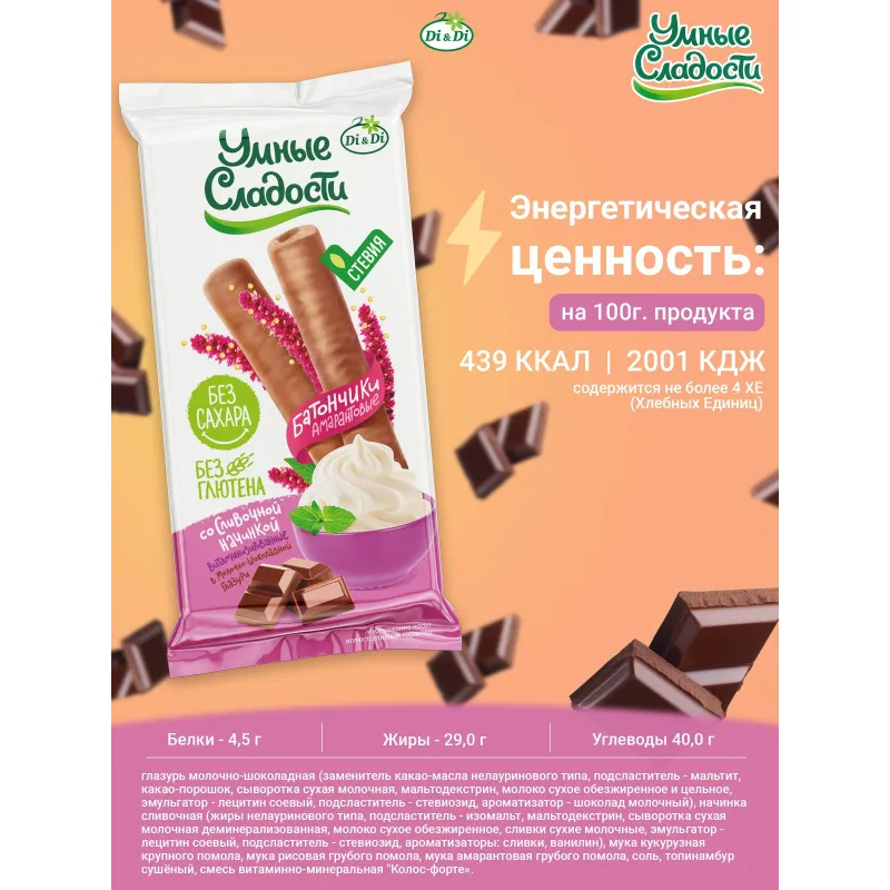 Батончик Умные сладости Di&amp,Di в молочно-шок.глазури, 20шт/1уп, 106953, купить в Грант СПБ