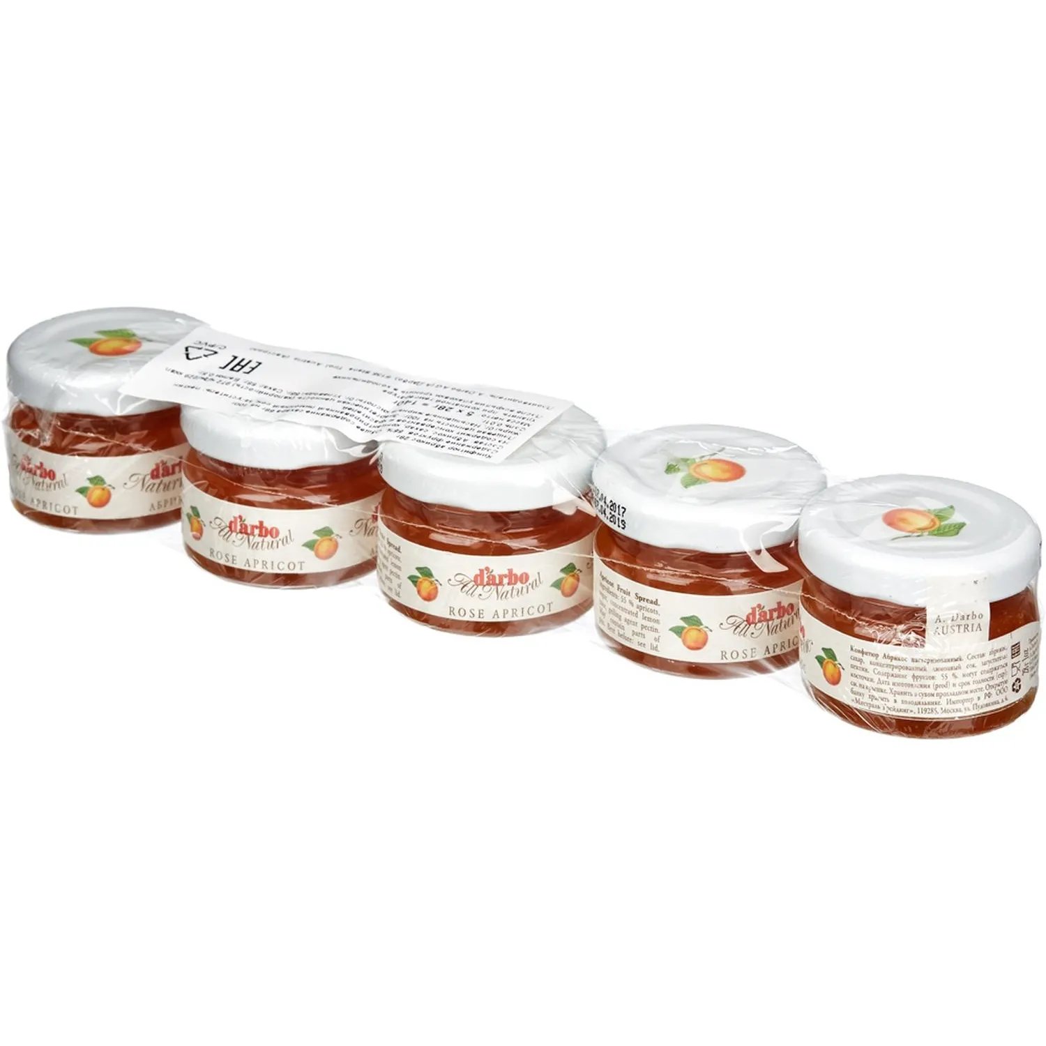Конфитюр порционный Darbo абрикос 28 г (5 штук в упаковке). Абрикос помогает при авитаминозах, анемии, так как содержащиеся в нем вещества воздействуют на процесс кроветворения. Этот фрукт способствует повышению сопротивляемости организма к различным болезням и восстановлению жизненно необходимых функций организма. В составе не менее 50% фруктов, имеет яркий абрикосовый аромат и вкус. Подходит для самостоятельного употребления или приготовления выпечки, не содержит консервантов и красителей.