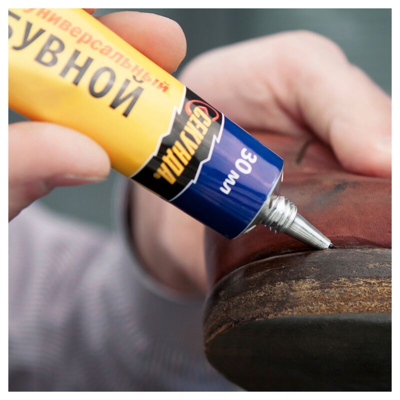 Универсальный обувной клей применяется при изготовлении и ремонте обуви, быстро и качественно склеивает обувные материалы в различных сочетаниях: кожу, кожзаменитель, резину, термоэластопласт, пластик, поливинилхлорид, войлок, ткани, пробковое дерево и др. Удлиненный носик облегчает процесс нанесения клея. Склеенное изделие можно эксплуатировать под нагрузкой и в условиях высокой влажности.