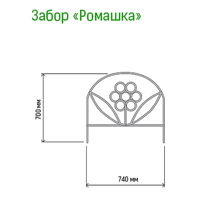 Заборчик-ограждение металлический "Ромашка" 70х74см, труба д1см, 5 секций 3,7м, окрашенный (Россия), 171731