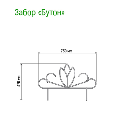 Заборчик-ограждение металлический "Бутон" 47х75см, труба д1см, 5 секций 3,75м, окрашенный (Россия), 171726, купить в Грант СПБ