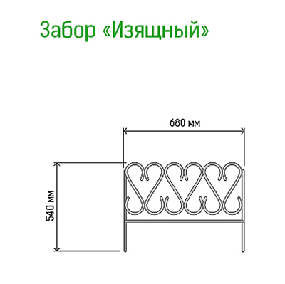 Заборчик-ограждение металлический "Изящный" 54х68см, труба д1см, 5 секций 3,4м, окрашенный (Россия), 171729, купить в Грант СПБ