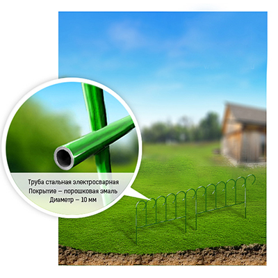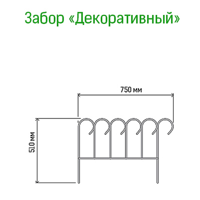 Заборчик-ограждение металлический "Декоративный" 51х75см, труба д1см, 5 секций 3,75м, окрашенный (Россия)