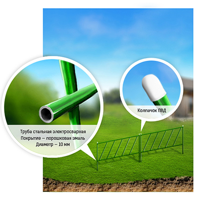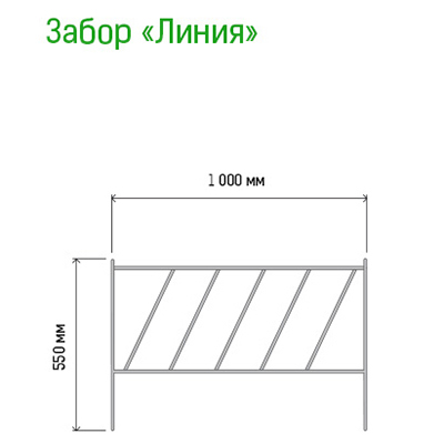 Заборчик-ограждение металлический "Линия" 55х100см, труба д1см, 5 секций 5м, окрашенный (Россия)