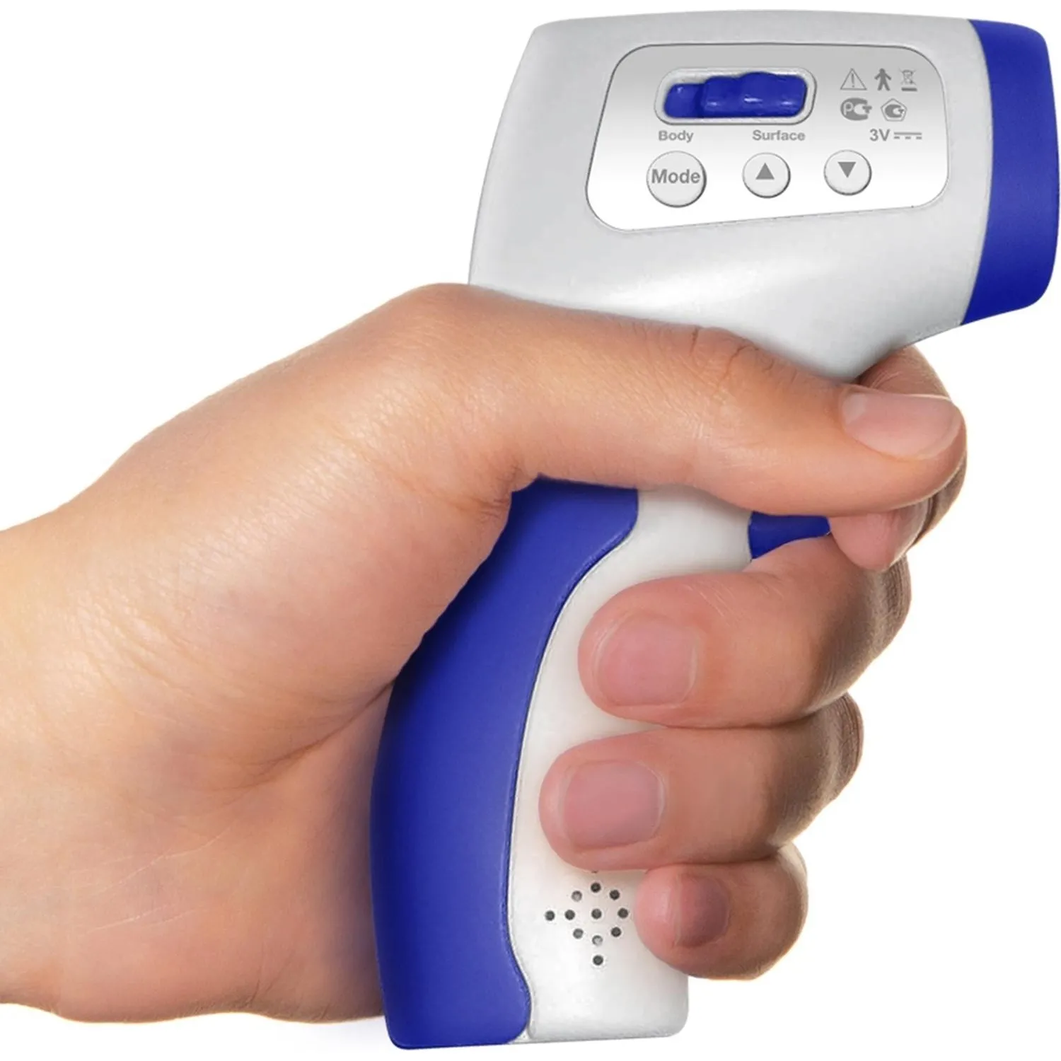 Термометр инфракрасный Apexmed NF-3101 предназначен для бесконтактного измерения температуры тела, а также температуры различных поверхностей, воздуха, воды и детского питания. Для получения результата достаточно направить прибор в центр лба и нажать кнопку — данные отобразятся на экране уже через одну секунду. Такой способ измерения исключает необходимость контакта с кожей, обеспечивая гигиеничность и удобство, особенно при использовании у детей.