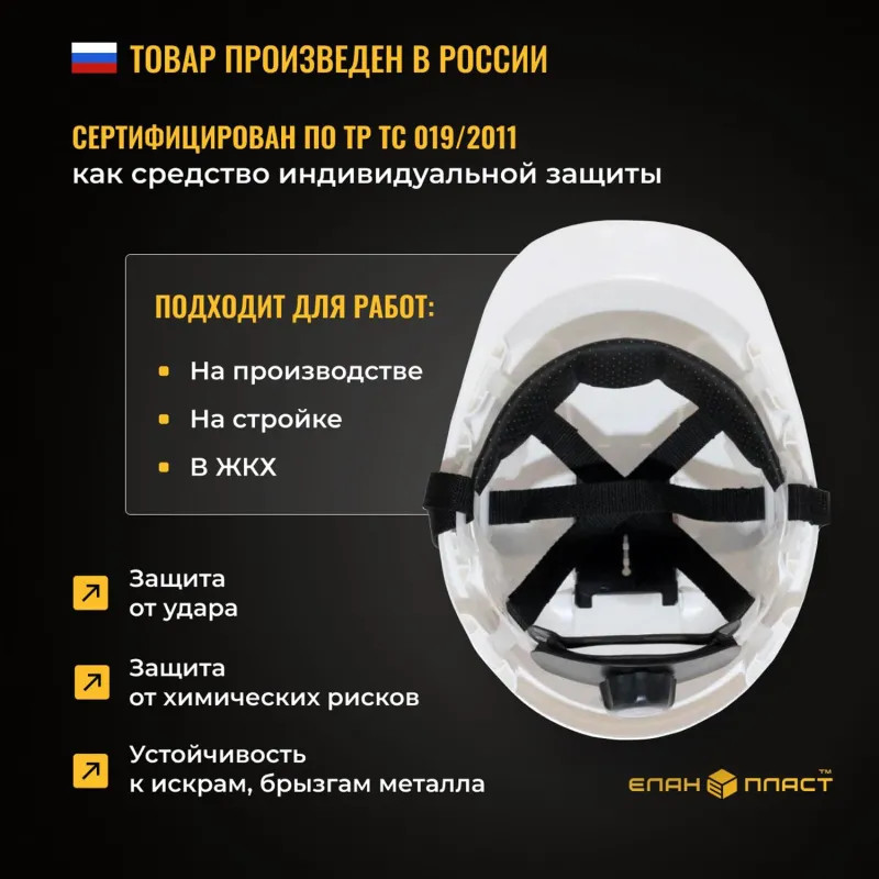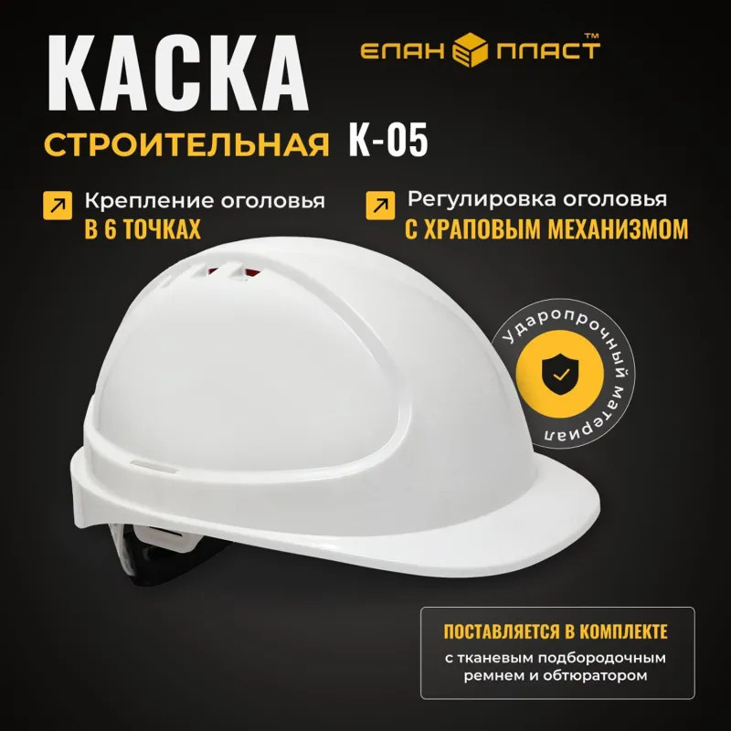 Каска Еланпласт Форвард белая (К-05) обеспечивает надежную защиту головы в условиях производственной деятельности. Она представляет собой уникальное сочетание защиты и комфорта для пользователя. Защита гарантируется за счет купола, выполненного из смеси ударопрочных компонентов ABS-пластика и поликарбоната.