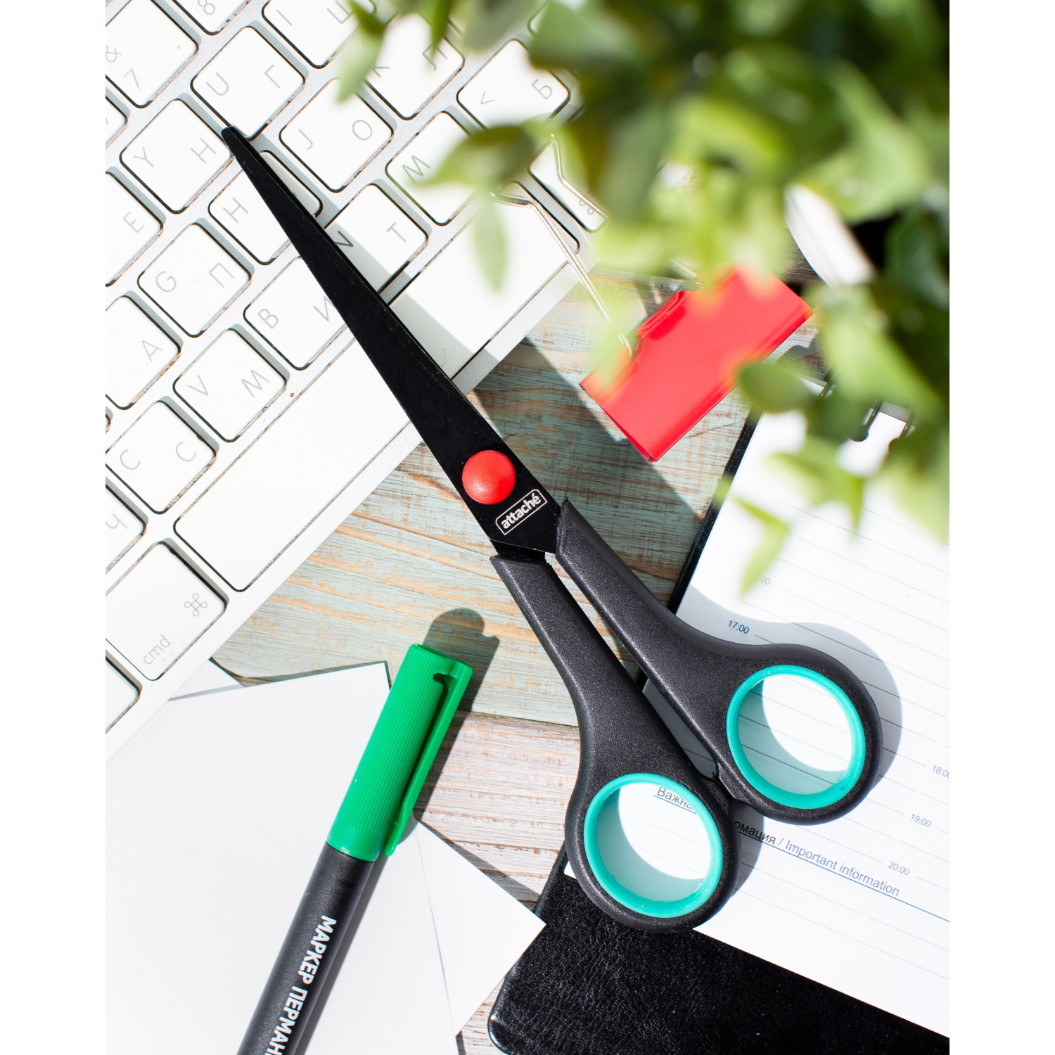 Канцелярские ножницы Attache имеют остроконечные лезвия выполненные из нержавеющей стали с тефлоновым покрытием. Симметричные эргономичные ручки выполнены из пластика черного цвета и имеют прорезинненые вставки зеленого цвета. Длина ножниц - 170 мм. Поставляются на картонной подложке.