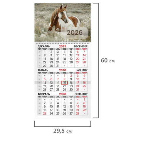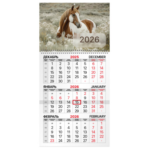 Квартальный календарь BRAUBERG "Символ 2026" предназначен для делового планирования. Офисный календарь на 2026 год на гребне. Состоит из 1 блока с календарными сетками на три месяца – предыдущий, текущий и последующий. Блок календаря напечатан на офсетной