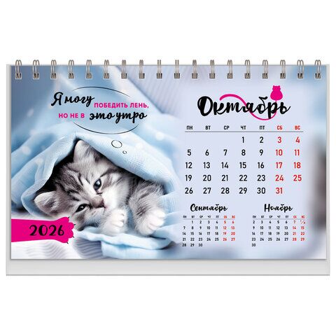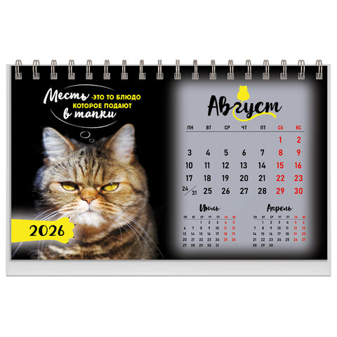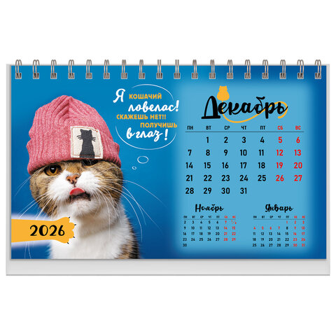 Календарь-домик настольный на гребне BRAUBERG на 2026 год предназначен для делового и бытового планирования. Яркая, красочная картинка дополнена календарной сеткой на месяц. Содержит 6 листов (с каждой стороны листа по 1 месяцу). Блок календаря напечатан