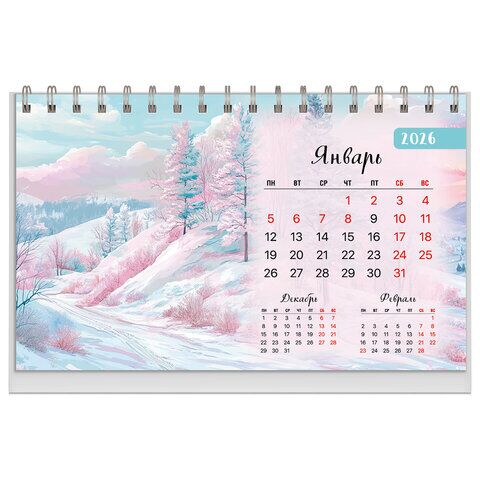 Календарь-домик настольный на гребне BRAUBERG на 2026 год предназначен для делового и бытового планирования. Яркая, красочная картинка дополнена календарной сеткой на месяц. Содержит 6 листов (с каждой стороны листа по 1 месяцу). Блок календаря напечатан