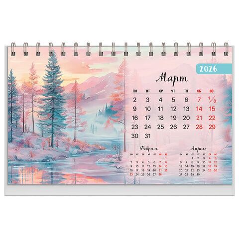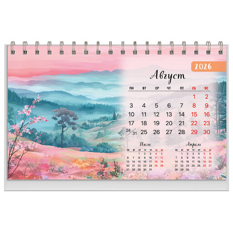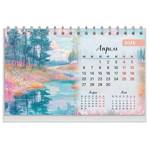 Календарь-домик настольный на гребне, 2026 г., BRAUBERG, 160х110 мм, 6 листов, "Природа", 170125, купить в Грант СПБ