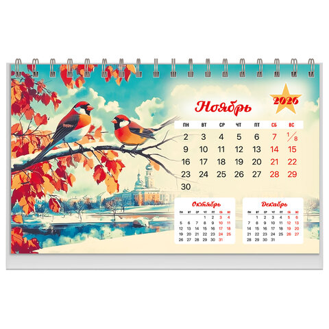 Календарь-домик настольный на гребне BRAUBERG на 2026 год предназначен для делового и бытового планирования. Яркая, красочная картинка дополнена календарной сеткой на месяц. Содержит 6 листов (с каждой стороны листа по 1 месяцу). Блок календаря напечатан