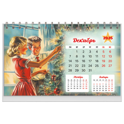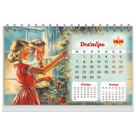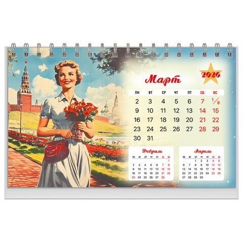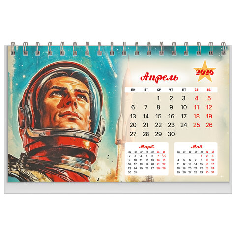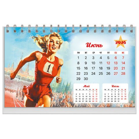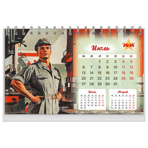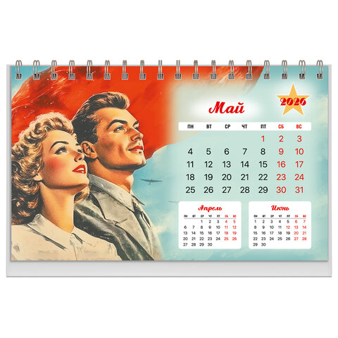Календарь-домик настольный на гребне, 2026 г., BRAUBERG, 160х110 мм, 6 листов, "Советские плакаты", 170124, купить в Грант СПБ