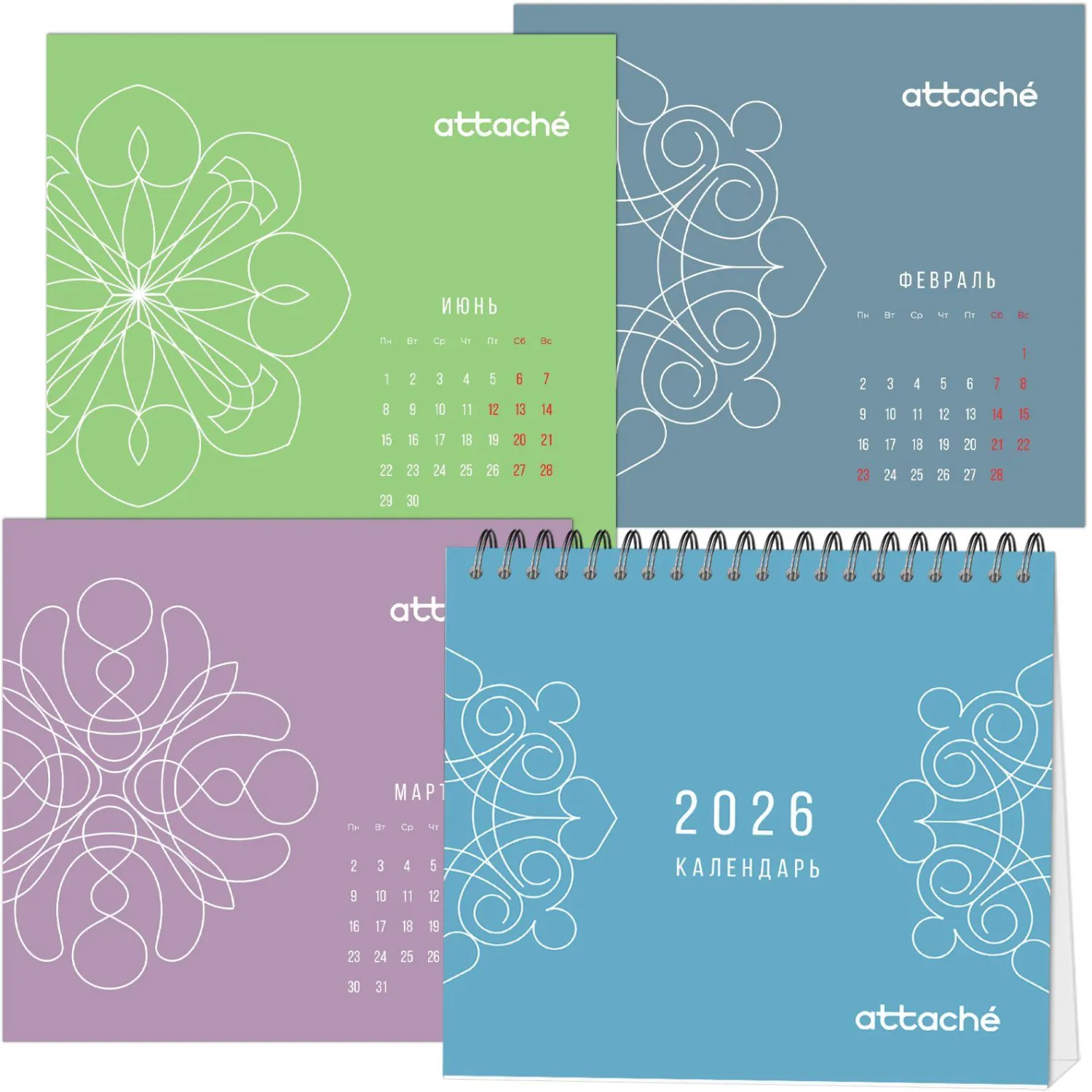 Настольный перекидной календарь-домик общим размером 120×,110 ,мм. Материал блока ,&mdash, мелованная бумага 115 ,г, полноцветная печать, 7 ,листов (1 ,лист обложка +