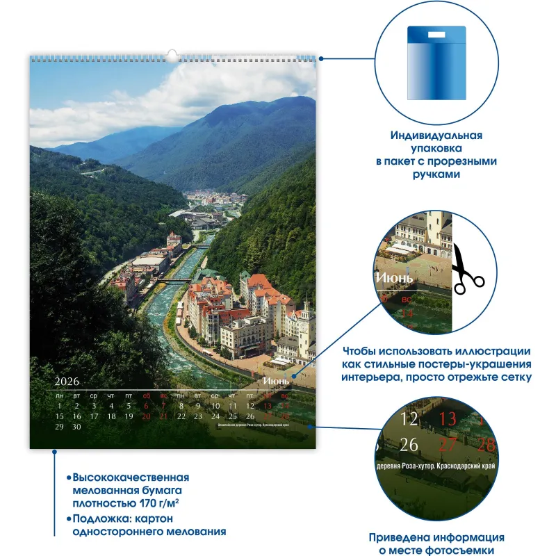 Настенный перекидной календарь на ,2026 ,год. Формат 420×,580 ,мм. Обложка мелованная матовая бумага 200 ,г/кв.м, глянцевая ламинация.