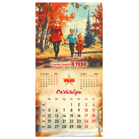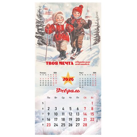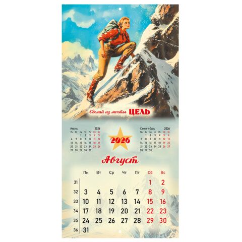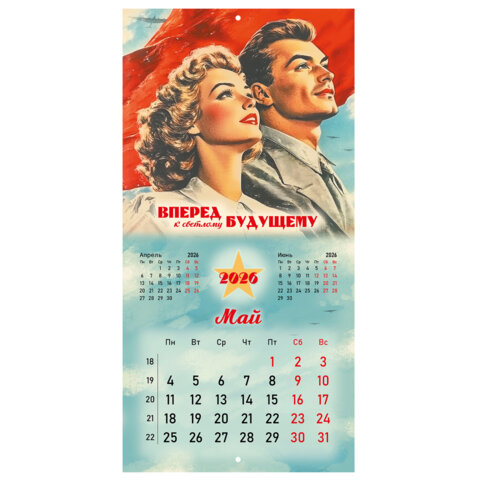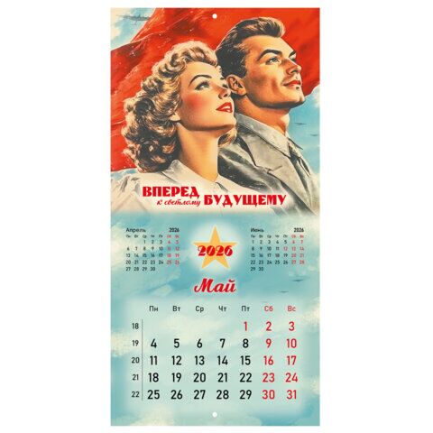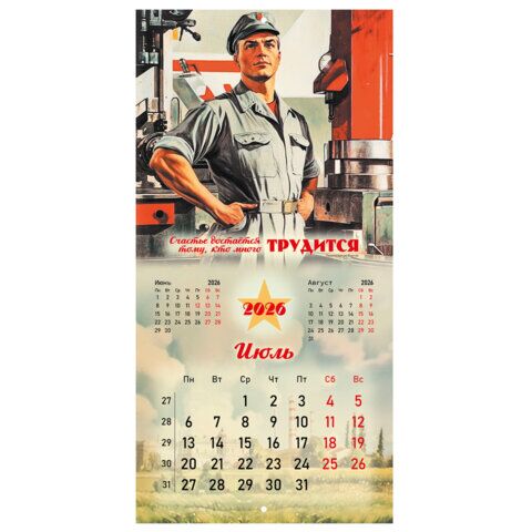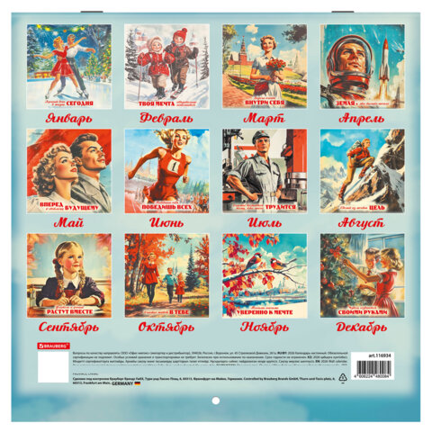 Календарь настенный перекидной 2026 г., BRAUBERG, 12 листов, 28,5х28,5 см, "Советские плакаты", 169865, купить в Грант СПБ