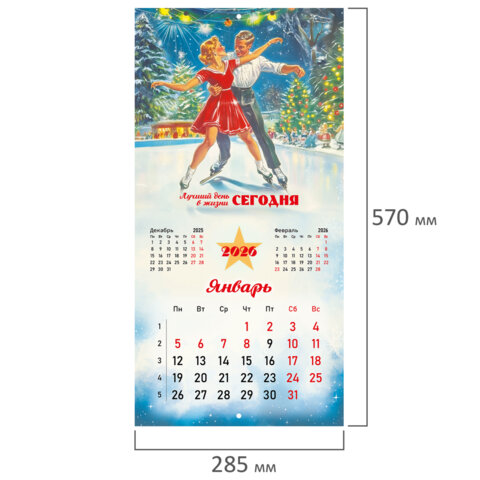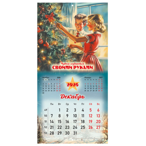 Календарь настенный перекидной 2026 г., BRAUBERG, 12 листов, 28,5х28,5 см, "Советские плакаты", 169865
