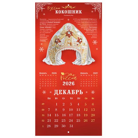 Календарь настенный перекидной 2026 г., BRAUBERG, 12 листов, 28,5х28,5 см, "Это Россия", 169862