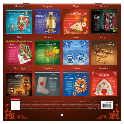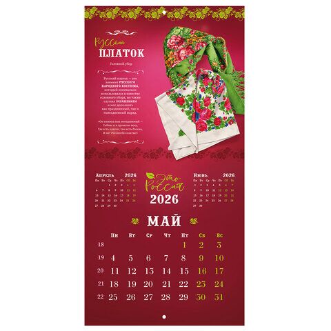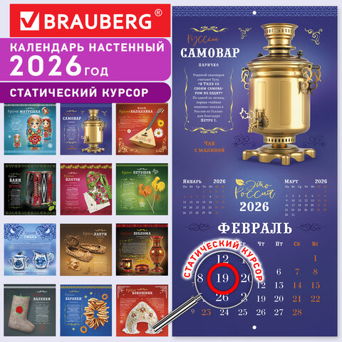 Календарь настенный перекидной 2026 г., BRAUBERG, 12 листов, 28,5х28,5 см, "Это Россия", 169862, купить в Грант СПБ
