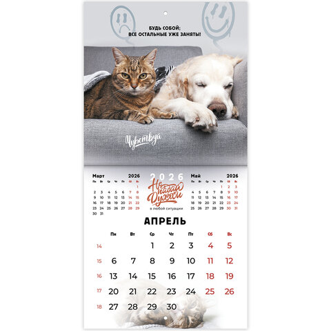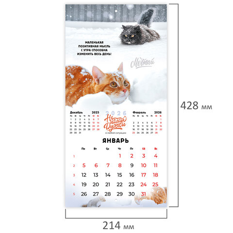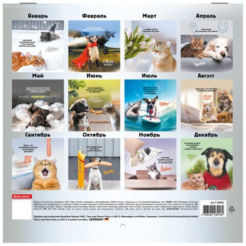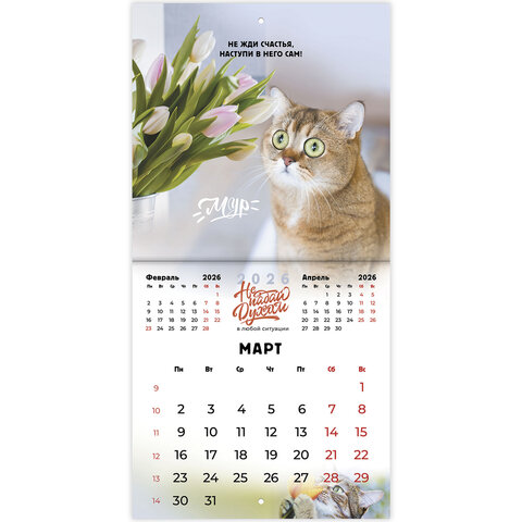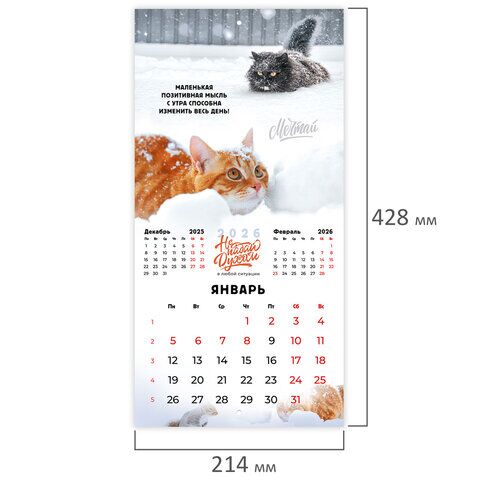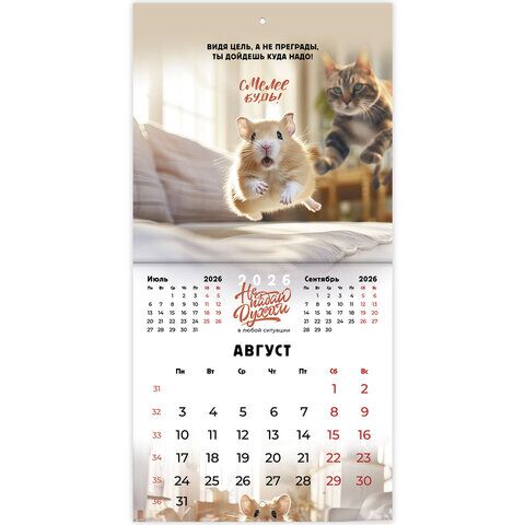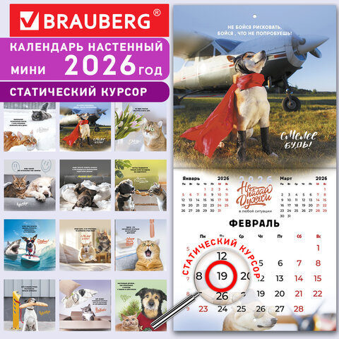 Календарь настенный перекидной 2026 г., BRAUBERG, 12 листов, 21,4х21,4 см, МИНИ, "Не падай духом", 169872, купить в Грант СПБ