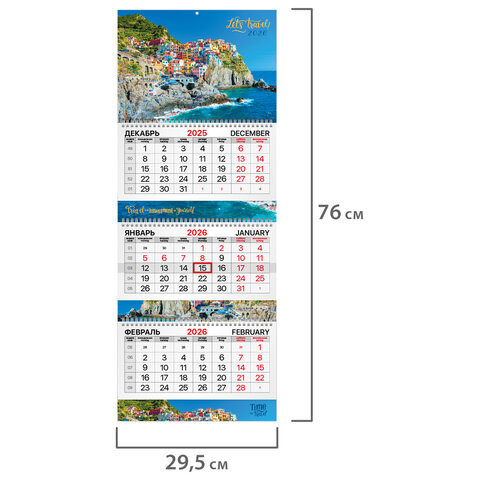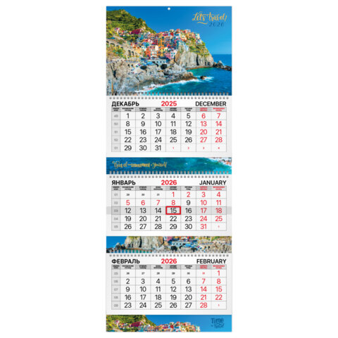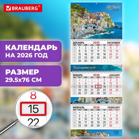 Квартальный календарь BRAUBERG EXTRA "Бухта" предназначен для делового планирования. Офисный календарь на 2026 год на 3 гребнях. Для удобства планирования состоит из 3 блоков с календарными сетками на три месяца – предыдущий, текущий и следующий. Курсор-б