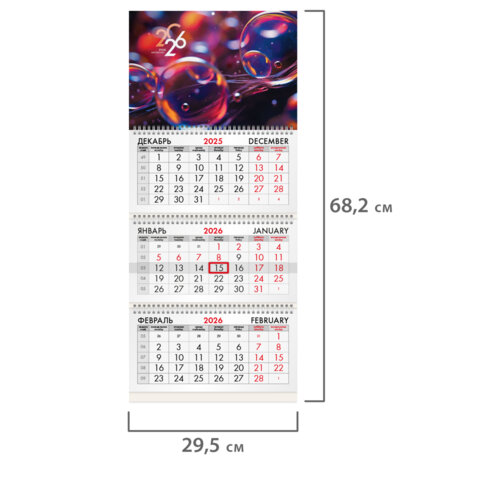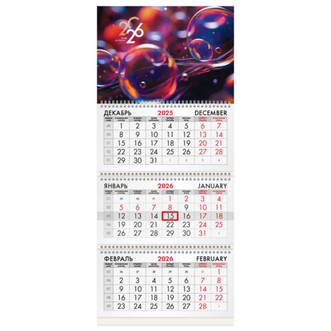 Квартальный календарь BRAUBERG "Волшебные пузырьки" предназначен для делового планирования. Офисный календарь на 2026 год на 3-х гребнях. Для удобства планирования состоит из 3-х блоков с календарными сетками на три месяца – предыдущий, текущий и последую