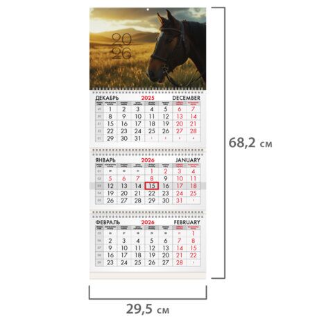 Квартальный календарь BRAUBERG "Символ 2026" предназначен для делового планирования. Офисный календарь на 2026 год на 3 гребнях. Для удобства планирования состоит из 3 блоков с календарными сетками на три месяца – предыдущий, текущий и следующий.