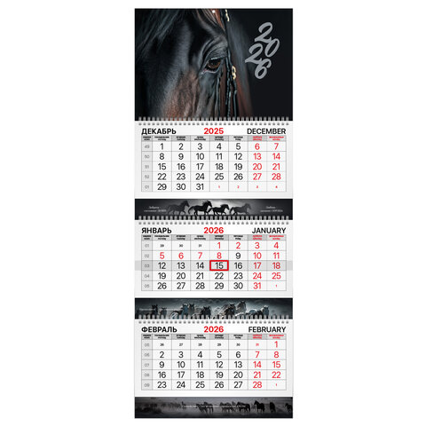 Квартальный календарь BRAUBERG EXTRA "Символ года" предназначен для делового планирования. Офисный календарь на 2026 год на 3 гребнях. Для удобства планирования состоит из 3 блоков с календарными сетками на три месяца – предыдущий, текущий и следующий. Ку
